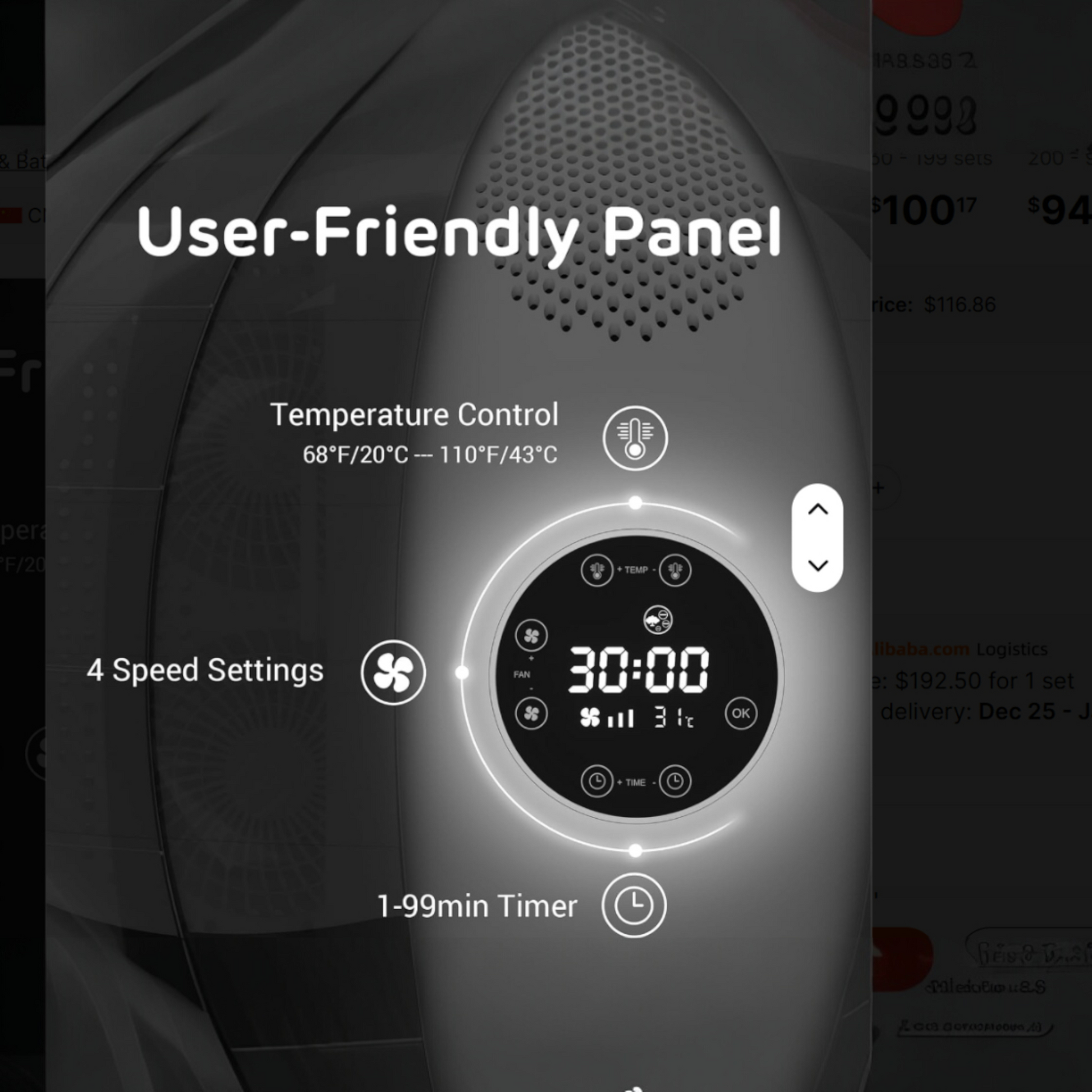 Adjustable airflow with 4 fan speed settings