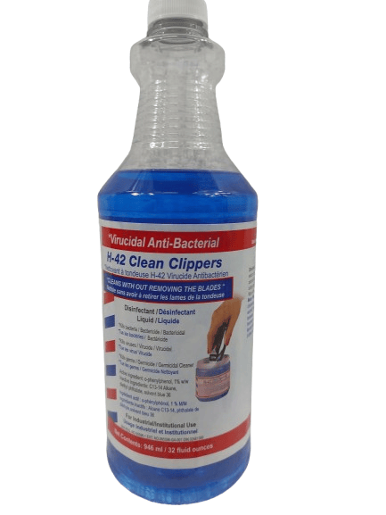 H-42 Clean Clippers is oil based so it won't rust your tools. When used as directed, H-42 Antibacterial/ Virucidal kills salmonella, pseudomonas aeruginosa, staphylococcus aureus, and HIV-1. It also helps to prevent the spread of skin infection between clients whether you are a Hairstylist, Barber or Groomer!